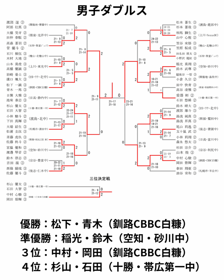 眞泉 龍寛 ①(空知・砂川中)、百瀬 仁翔 ①(空知・砂川中)、佐藤 瑠星 ② (空知・砂川中)、菅原 幸介 ③ (空知・光陵中)