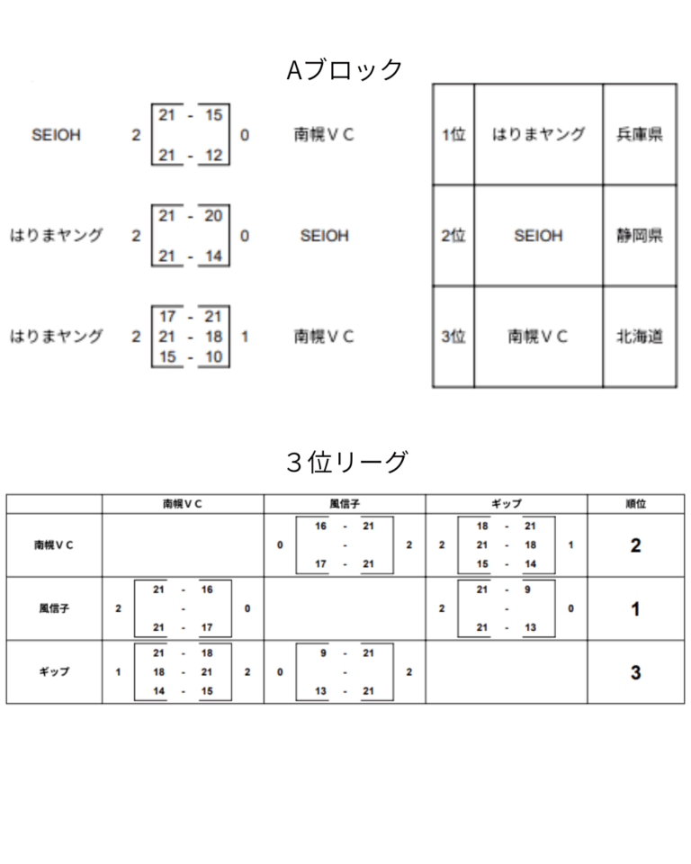 男子:北海道イエロースターズU15、ヴォレアス北海道ジュニア