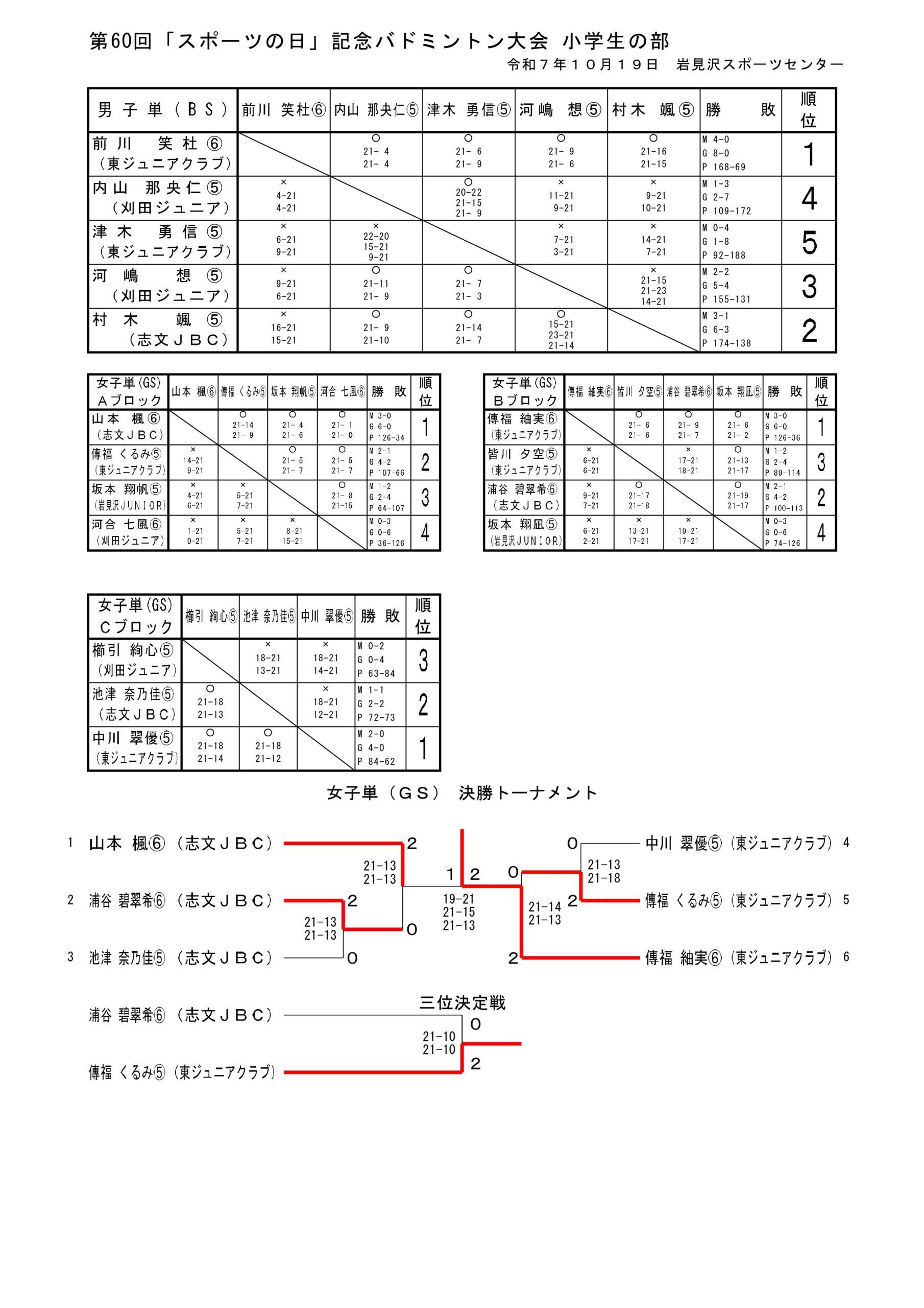 第60回「スポーツの日」記念バドミントン大会小学生の部